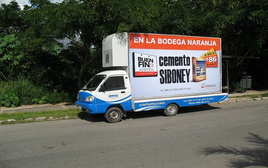 Vehículos equipados con pantallas laterales para exhibición de lonas, faldones y posteriores para vinil.